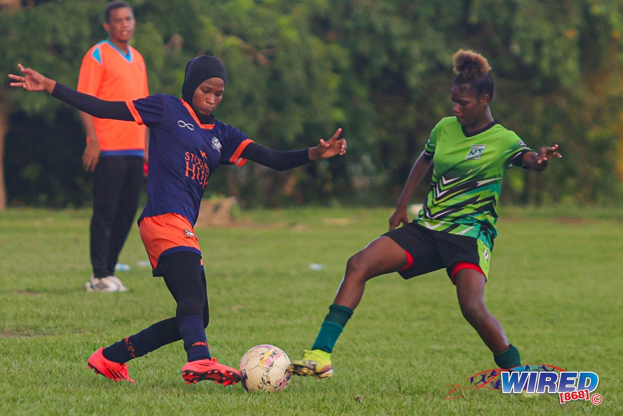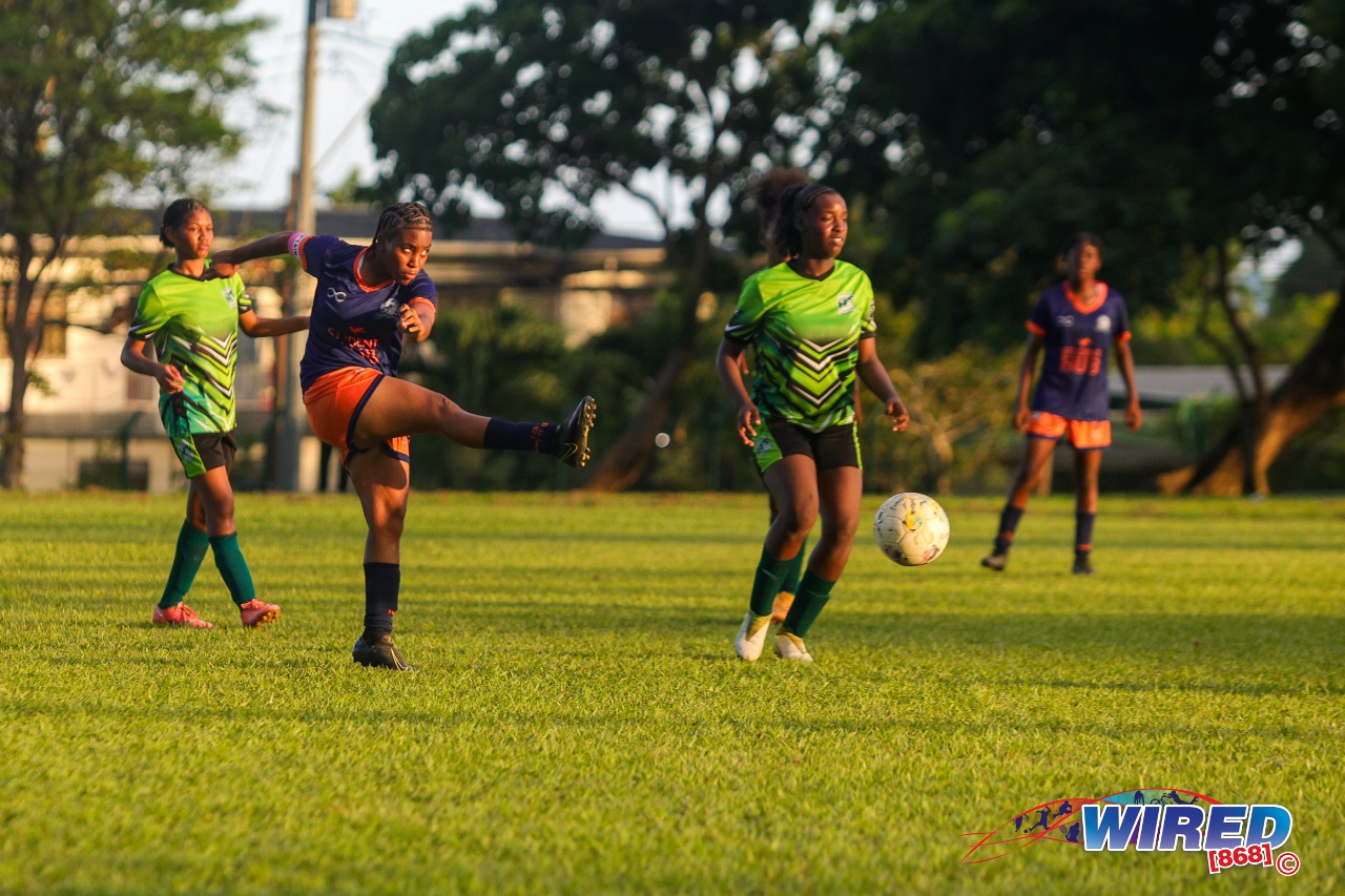 San Juan continued to pass the ball around without advancing past the midfield, but their defence held up well against the zonal champions. Central defender Taya Williams, in particular, looked assured in possession and committed to their build-up tactics.