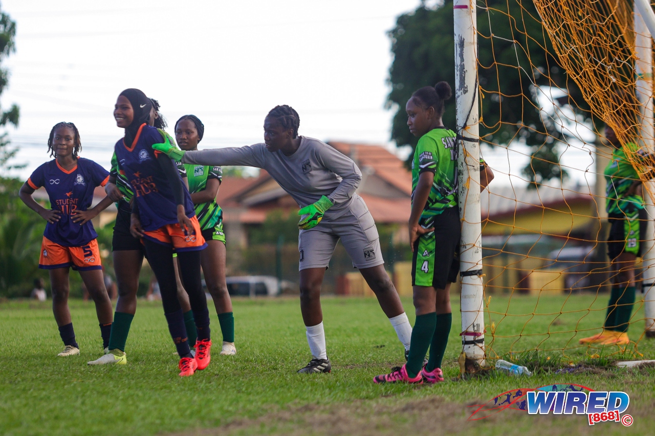 San Juan North Secondary (4-3-3): 30.Myeisha Cox (GK); 19.Tara St Rose, 16.Kimora Mitchell (captain), 5.Taya Williams, 4.Briana Fraser; 9.Shinika Lewis, 15.Kezia Jacob, 10.Aniya Johnson; 6.Anaya Busby (7.Jada Joseph 74), 12.Afiyah Charles, 8.Chelsea Sealey.