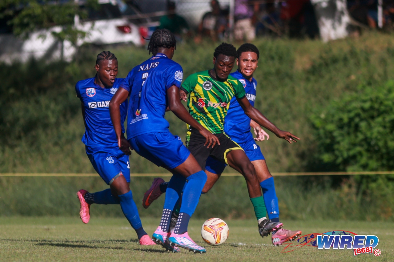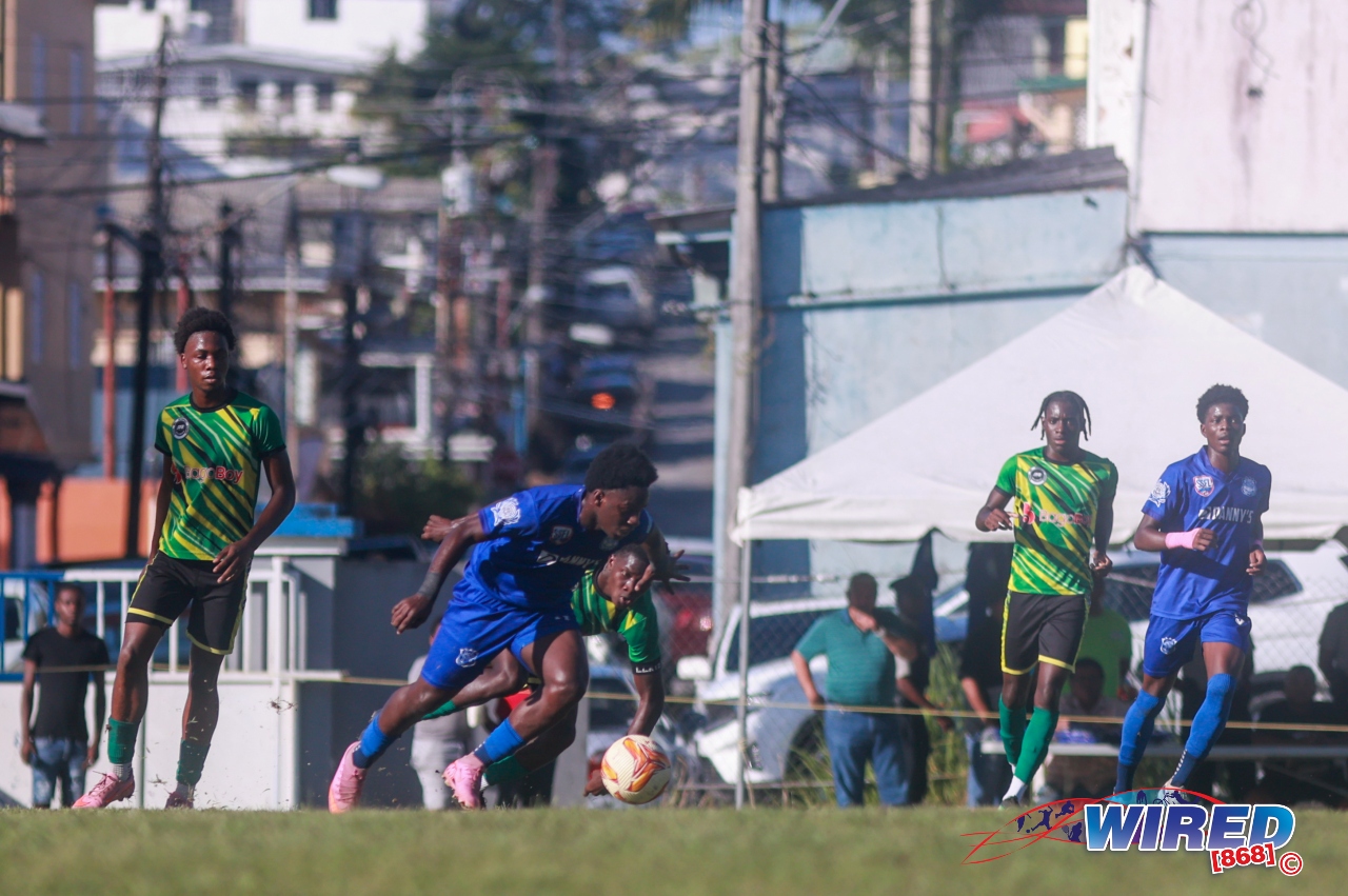 Trinity College 2 (Jaeden Samuel 54, Kevez Quintero 67), Presentation (San F’do) 3 (Roshaun Doobay 7, Nkosi Foncette 41, Kwesi Seales 53) at Moka.