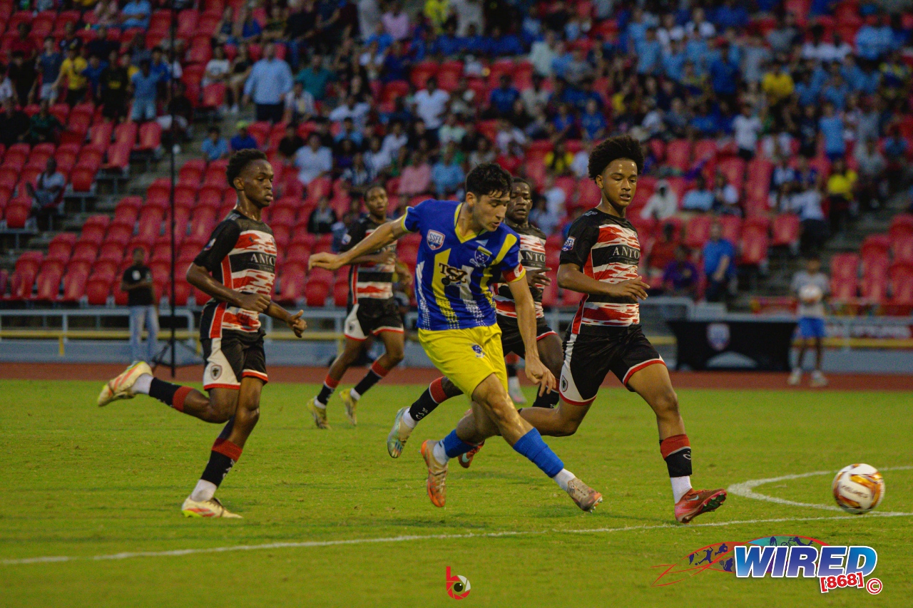 Fatima College 2 (Seth Hadeed 46, 48 pen), St Anthony’s College 4 (Kanye Glasgow 6, 87, Kymani Thomas 27, Adriel Faure 66) in North Boys final at Hasely Crawford Stadium,