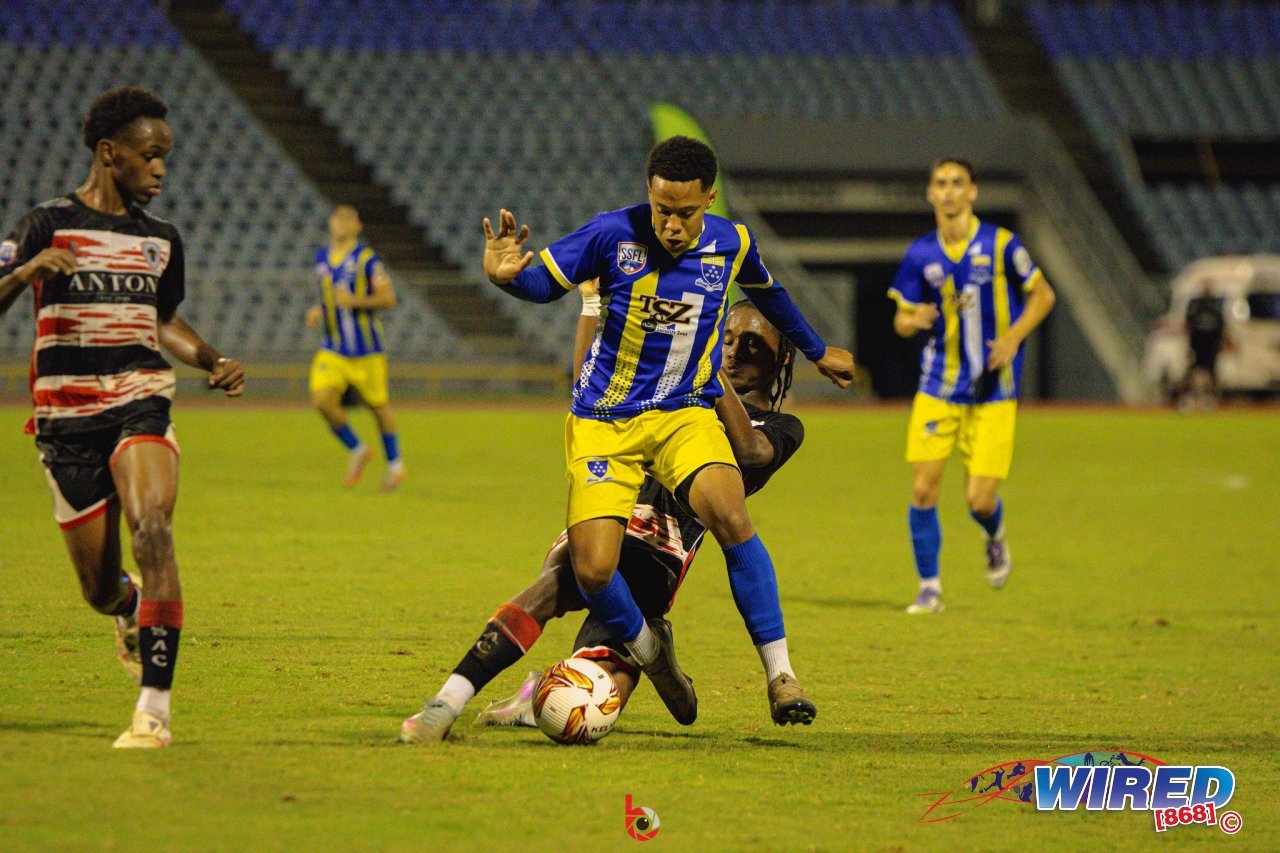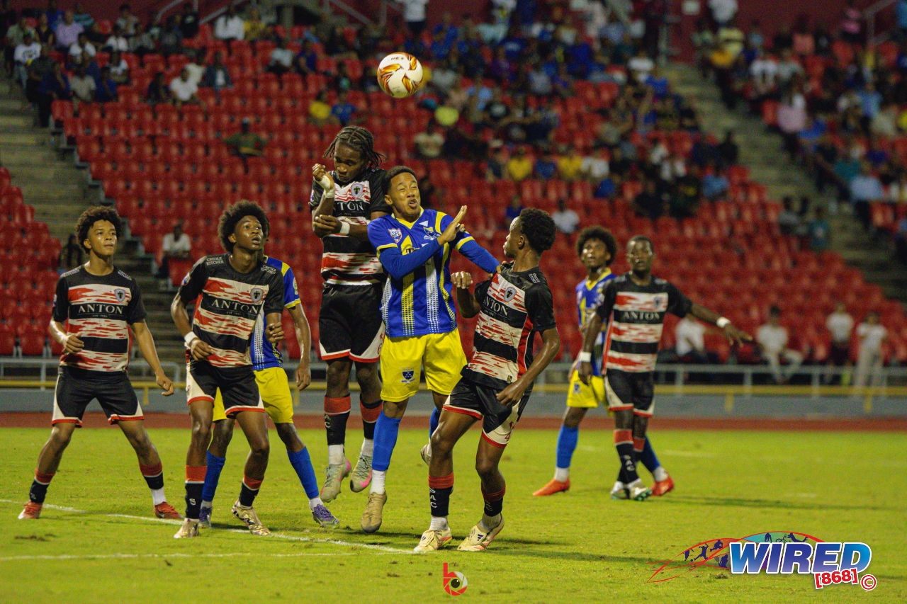 Fatima College 2 (Seth Hadeed 46, 48 pen), St Anthony’s College 4 (Kanye Glasgow 6, 87, Kymani Thomas 27, Adriel Faure 66) in North Boys final at Hasely Crawford Stadium,