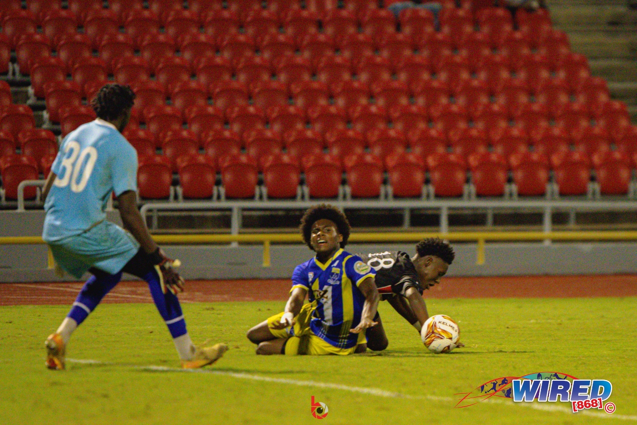 De Four’s rash decision was compounded when Jabari Roberts dispatched the free kick to put the “Country Boys” ahead. And Speyside—who have just won promotion back to the Premier Division via the First Citizen Big Five competition—built on their surprise lead too, as Achike Stewart scored off a corner kick at the half hour mark.