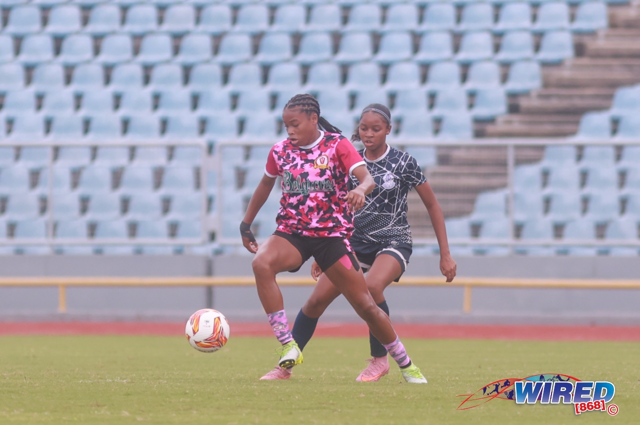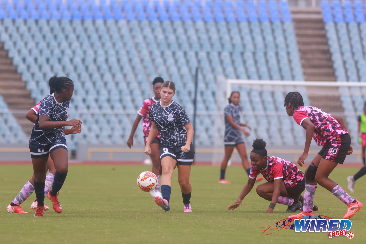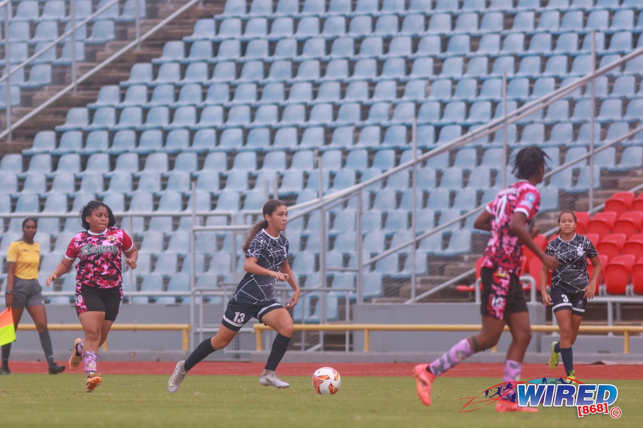 St Joseph’s Convent (POS) 0, Pleasantville Secondary 5 (Nikita Gosine 2, 12, Kaeley Martin 65, Zara Chase 69, Natalia Gosine 77) at Hasely Crawford Stadium;