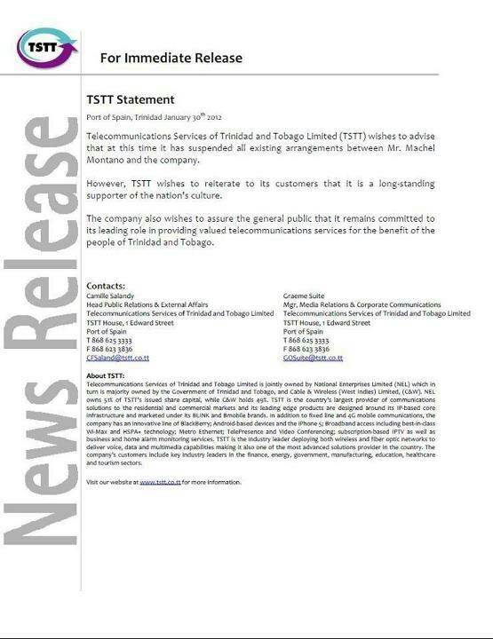 Editor’s Note: See TSTT statement on Machel Montano