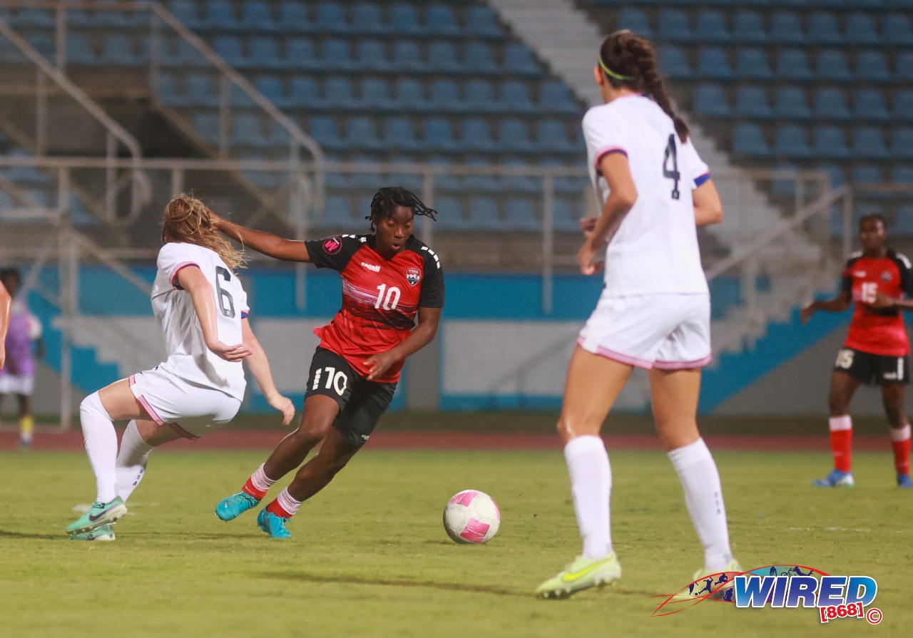But, remarkably, the visitors had still not beaten Aimey at the half hour mark. And in the 32nd minute, Trinidad and Tobago forced USA goalkeeper Evan O’Steen to use her hands for the first time—albeit to gather a long, overhit freekick from Yearwood in the general direction of winger Rasheda Archer.