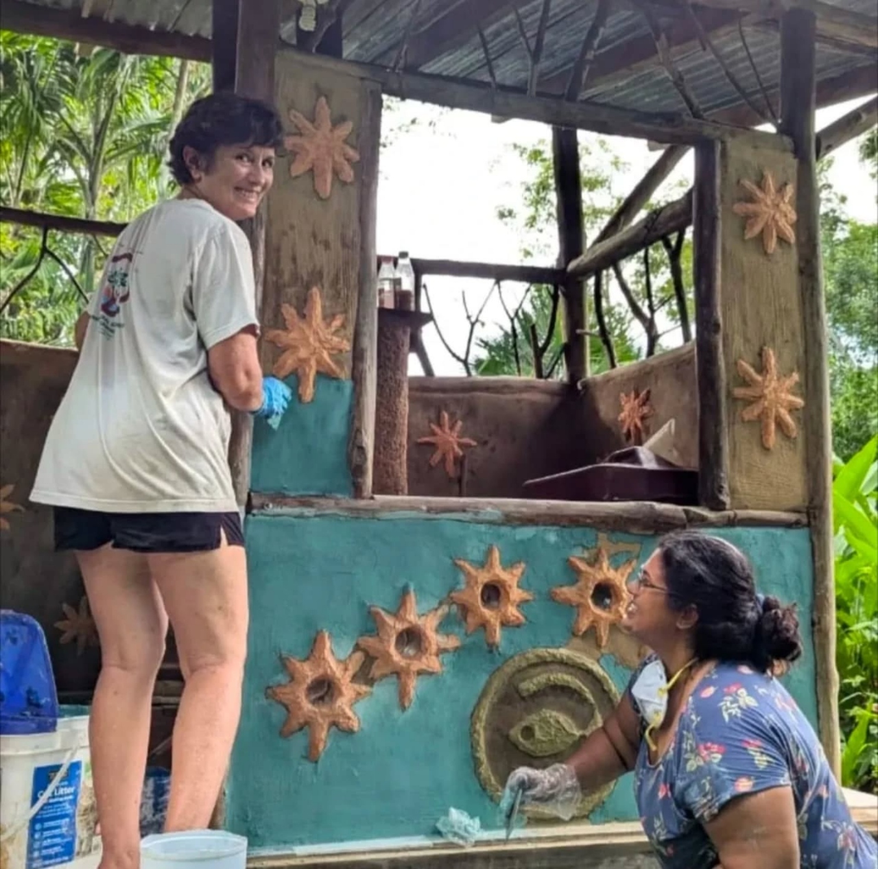 They produce flowers, fish, food crops, and offer internships and courses in tropical permaculture design. I’d learned about this place when my daughter wrote an article for the BBC about their use of traditional clay and other earthly material for building instead of concrete, and the practice of regenerative farming.