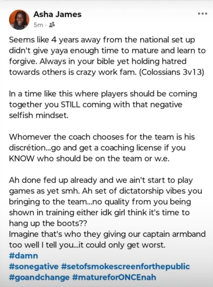 Of course, it is not James’ only seismic social media post this year. In June, the gifted midfielder slammed the Edwards-led TTFA for neglecting its women’s programme.