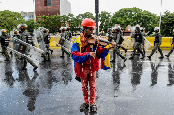 Venezuelan violinist Wuilly Arteaga plays a tune of protest during civil unrest in the South American country.